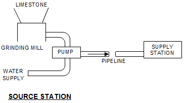 Design a pipeline for transporting crushed limestone from a quarry to a terminal located some distance away, using water as a transporting medium.