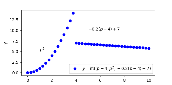 lbl = r'$y=\mathrm{if3}(p-4,p^2,-0.2(p-4)+7)$'