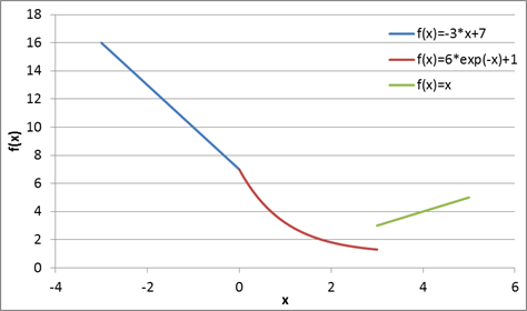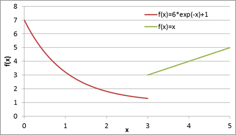 y = m.if3(x-3,6*m.exp(-x)+1,x)