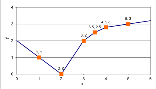 The example shown above demonstrates a PWL function with one input and one output but it can also be extended to cases with multiple inputs and multiple outputs.