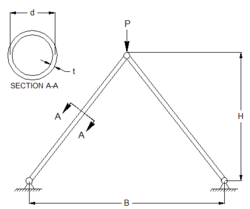 A design of the truss is specified by a unique set of values for the analysis variables: height (H), diameter, (d), thickness (t), separation distance (B), modulus of elasticity (E), and material density (rho). Suppose we are interested in designing a truss that has a minimum weight, will not yield, will not buckle, and does not deflect "excessively,” and so we decide our model should calculate weight, stress, buckling stress and deflection.