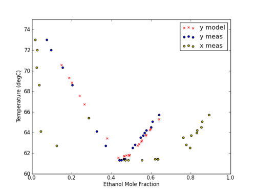 m.Equation(y1 == (G_C2H5OH * PsatEthanol / P) * x1)