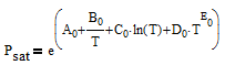 return np.exp(A + B/T + C*np.log(T) + D*T**E)