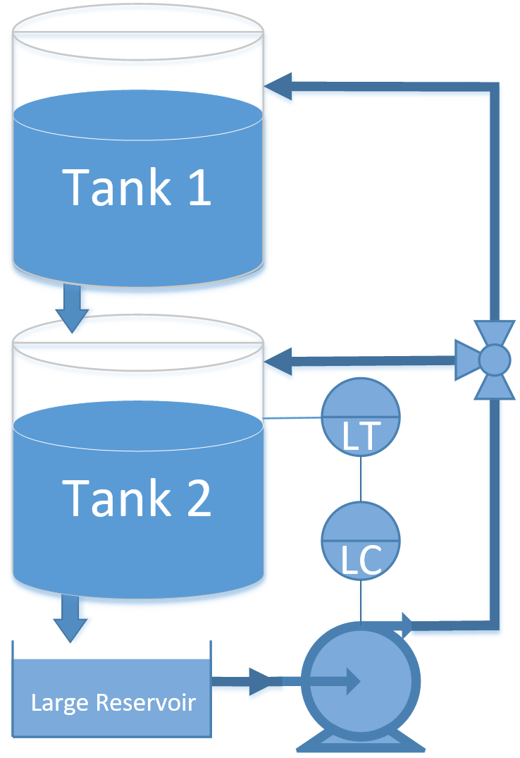 The objective of this case study is to automatically maintain a liquid level in the lower of two dual gravity drained tanks.