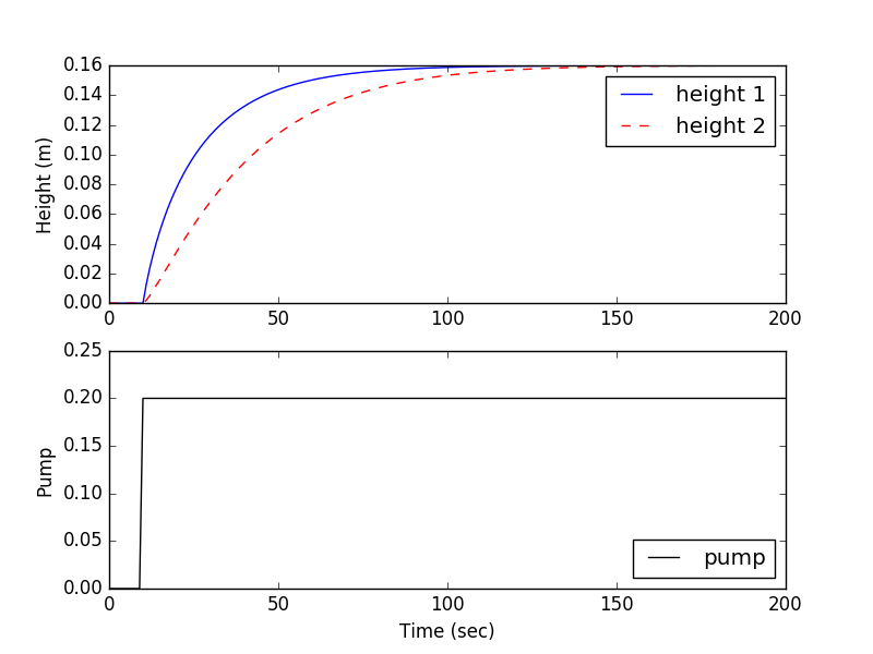 dhdt1 = c1 * (1.0-valve) * pump - c2 * np.sqrt(h1)