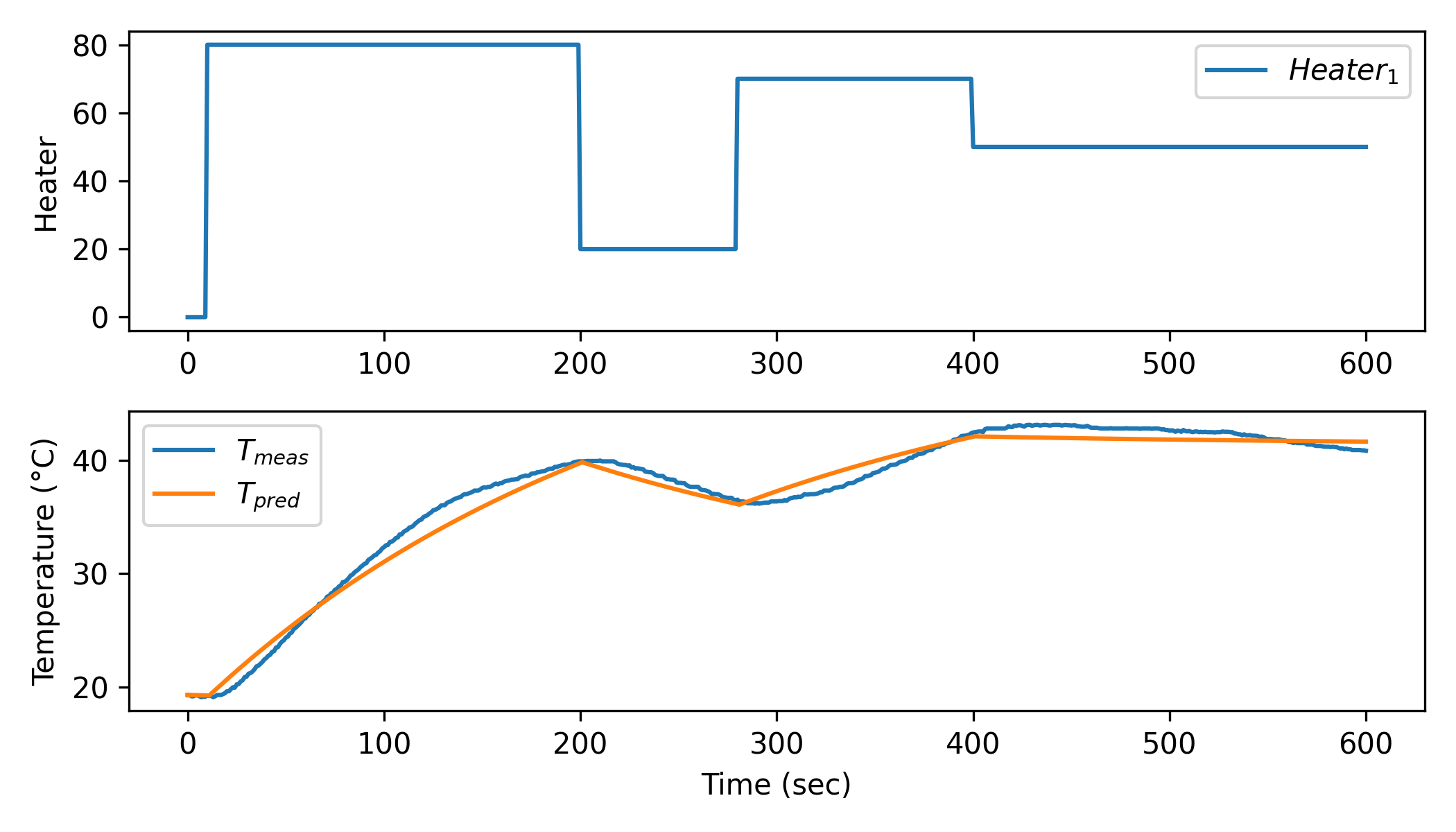 yp,p,K = m.sysid(t,u,y,na,nb,pred='meas')